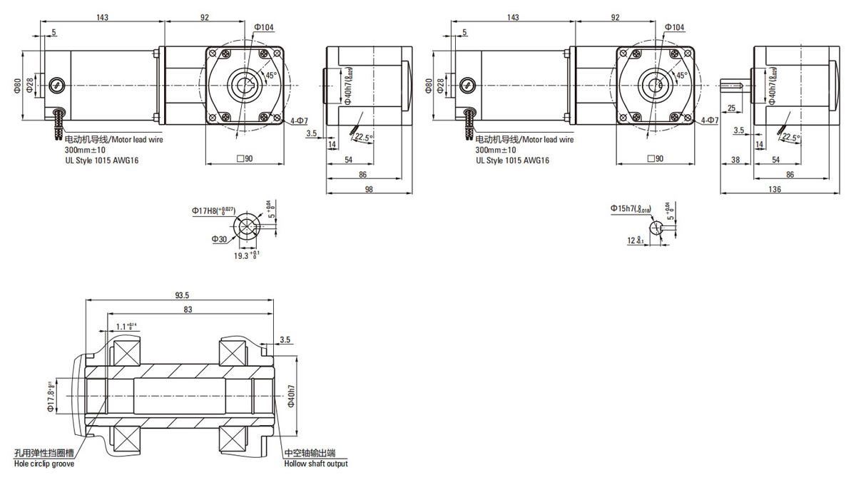 - Motorreductor de CC con escobillas 90mm 120W