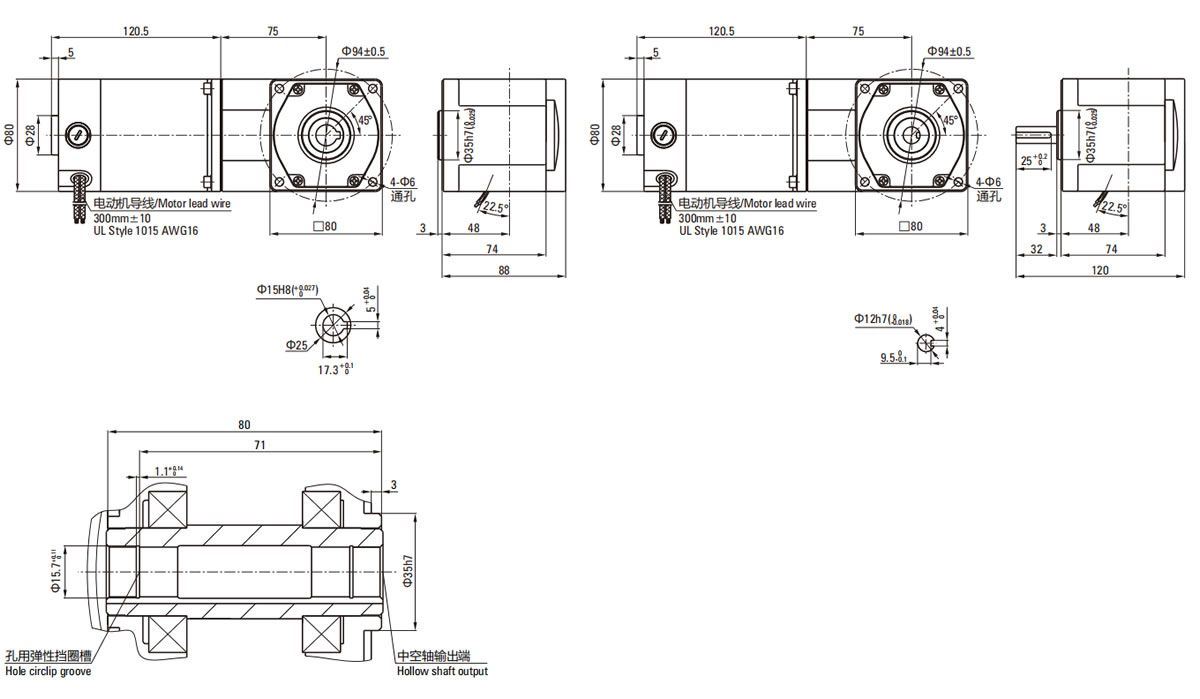 - Motorreductor de CC con escobillas 80mm 40W