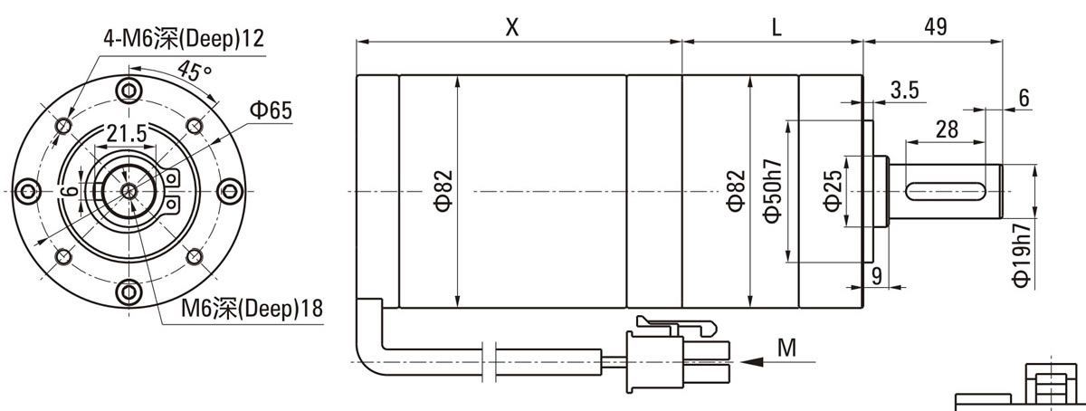 | Modelo del motor | X Dimensión (mm) | Modelo del reductor | Relación de transmisión | L Dimensión (mm) |