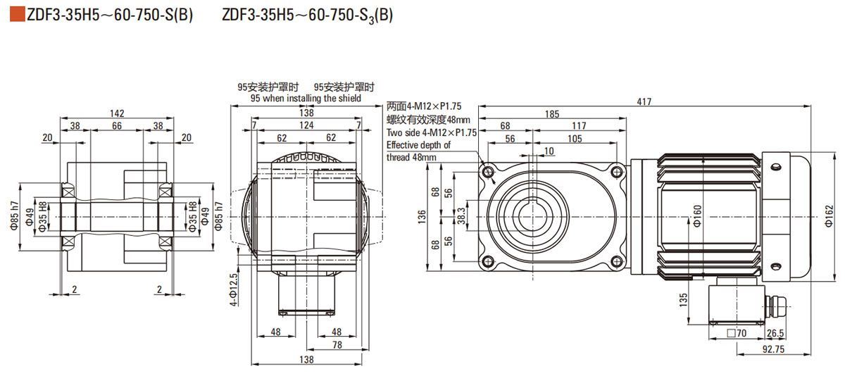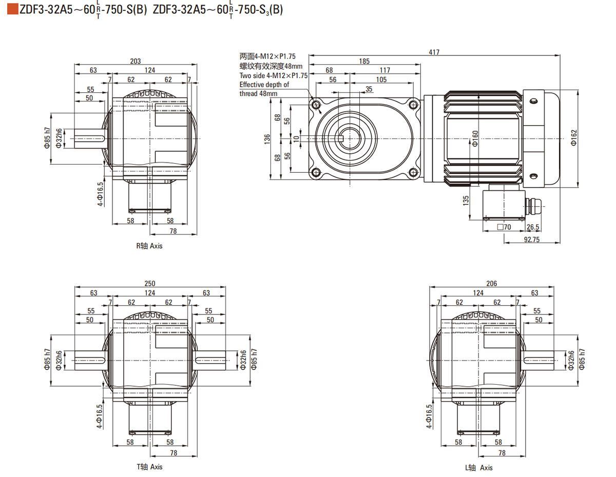 | ZDF3-45H-750-S(B) | 750 | 200 | 60 | 3.45 | 4.22 | 1700 | 9.20 | 10.0 | F |