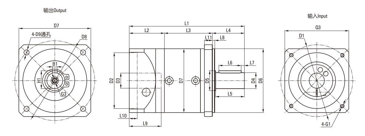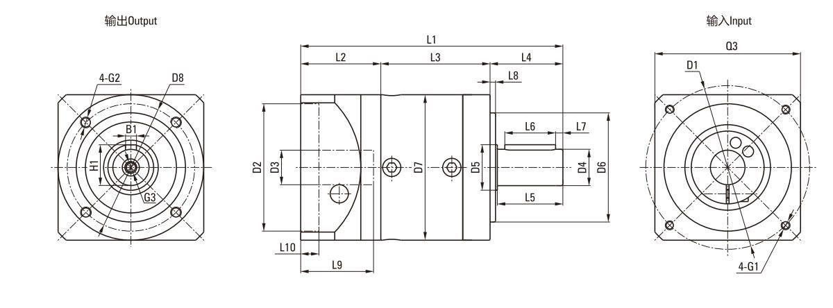 | Longitud de la brida del motor L2 | 28.5 | 32 | 44 | 66.5 | 99 | |||||||||